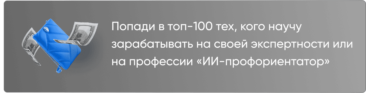 Попади в топ-100 тех, кого научу зарабатывать на своей экспертности или на профессии «ИИ-профориентатор»